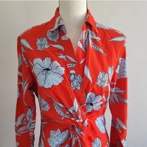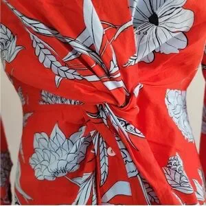 Zara MIDI Red Floral Twist/Shirt Dress. Has great vintage vibes! Like New Condition! So pretty, I just have so many dresses and this one needs more love! Lightweight! Great for warm weather, outdoor garden party, etc!