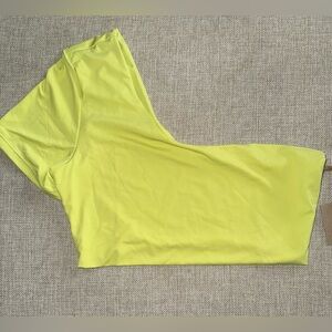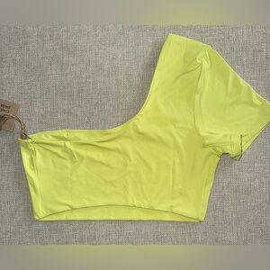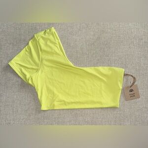 So bold bikini top featured in an eco-friendly fabrication and one-shoulder silhouette with a cropped fit.