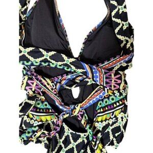 Trina Turk Geometric Print One-Piece Swimsuit W/ Cutout Size 6 Resort Beach