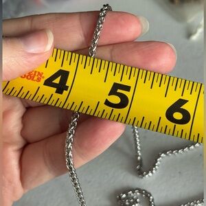 This elegant silver chain necklace adds a touch of sophistication to any outfit. Perfect for any occasion.