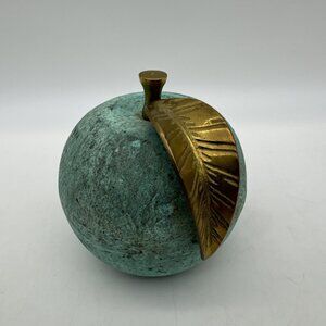 Vintage Brass Metal Apple Fruit Heavy Patina Paperweight MCM Figurine