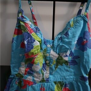 Step into summer with this playful and breezy floral romper from Hollister. Featuring a vibrant mix of multi-coloured blooms against a soft blue backdrop, this one-piece is your go-to for sunny days, beach strolls, or casual outings with friends. The lightweight, breathable fabric keeps you cool while the flattering cinched waist and adjustable straps ensure a perfect fit. Whether you’re pairing it with sandals for a daytime look or dressing it up with wedges and accessories for an evening vibe, this romper delivers effortless style and comfort.