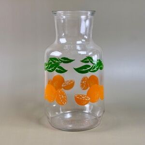 Vintage Anchor Hocking Juice Jug | Citrus Carafe with Oranges & Leaves | 1970s