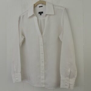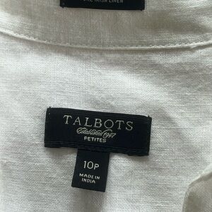 Talbots Petites 100% Pure Irish Linen White Blouse Top Buttondown Size 10p