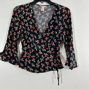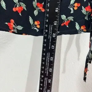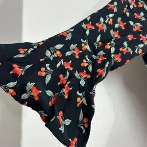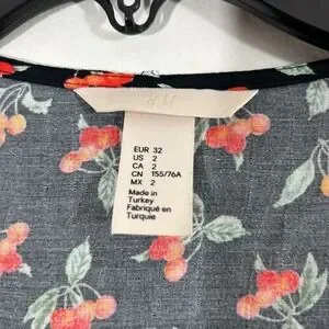 H&M Womens Cherry Print Wrap Top V-Neck 3/4 Bell Sleeves Size 2