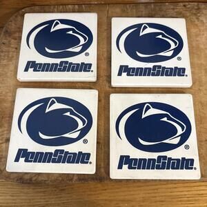 The is a set of four AbsorbaStone coasters featuring the Penn State Nittany Lions team logo. They are officially licensed, and do have some imperfections. Some of them, are chipped on the corners.