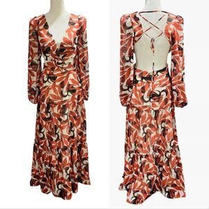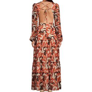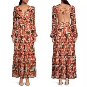 Gianni Bini Lillian Maxi Dress Size 12 Copper Palm Print Tiered Cut Out NEW