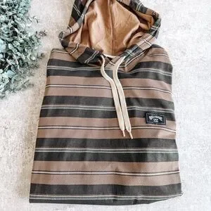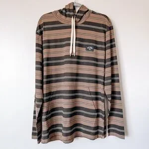Billabong Brown Stripe Long Sleeve Hooded Sweater Size Large