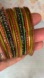 Enhance your style with this elegant multicolor bangle set. Featuring a blend of gold, black, and green hues, these bangles add a touch of sophistication to any outfit.