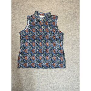 Vintage Arizona Womens Floral Sleeveless Polo Tank Top Shirt Cotton 90s XL