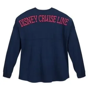 Set sail in high spirits wearing this premium pullover top with pieced yoke, an adjustable lace-up neckline, and the Disney Cruise Line icon. Classic Spirit Jersey silhouette with long sleeves, drop shoulders, crew neck, relaxed fit through body. Textured ink lettering on back and Disney Cruise Line icon on chest. Thick jersey knit, lace-up neckline, shirttail hem. Navy blue with red and white accents. 100% cotton.