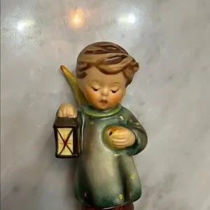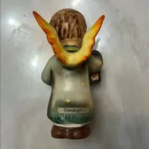 Adorable angel figurine holding a lantern. Features a green robe, so sweet. Label sates, goodnight. Previously owned in good condition. See pictures for details.