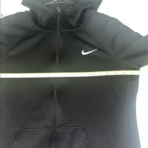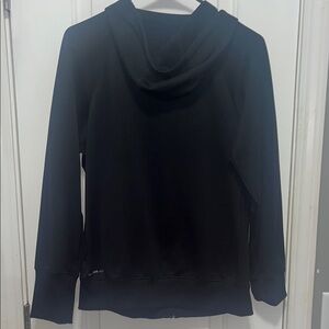 Classic black hoodie with zip closure. Features Nike logo on the chest. Comfortable and stylish.