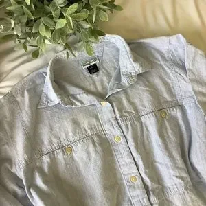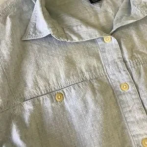Casual light blue shirt. Button-up front. Long sleeves. Classic collar. In excellent condition. Smoke free/pet friendly home
