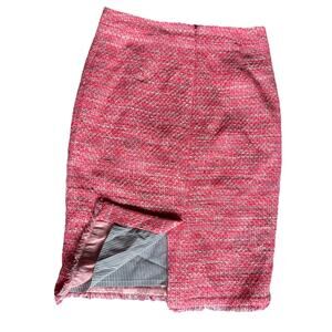 J.Crew Womens Tweed Pencil Skirt Pink Back Zip Frayed Hem Work Casual 2P PETITES