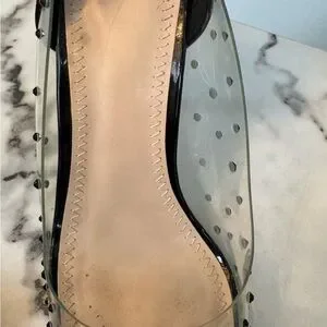 Elevate your style with these sophisticated bp heels, featuring a sleek black and clear design. The pointed-toe silhouette is adorned with scattered silver studs, adding a touch of glamour to any outfit. See through shows off your pedicure while maintaining a closed toe coverage. Perfect for making a statement, these heels combine modern elegance with a contemporary edge.