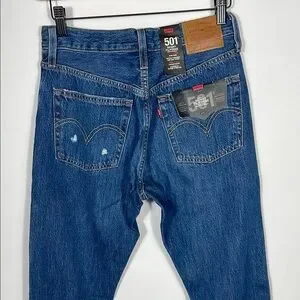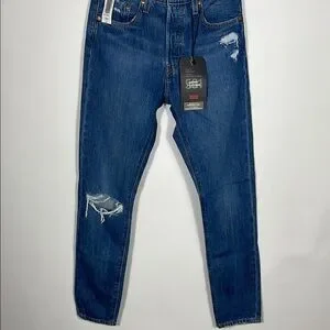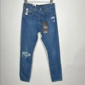 Upgrade your wardrobe with Levi's 501 skinny blue distressed jeans. Perfect for a casual, stylish look.