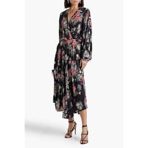 NWT IRO Paris Aleyna Wrap-Effect Floral-Print Satin Midi Dress Size 32 / 0