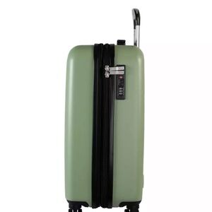 Travel in style with the Calvin Klein green hardshell spinner suitcase. Durable and sleek, this suitcase offers easy maneuverability and a modern design.