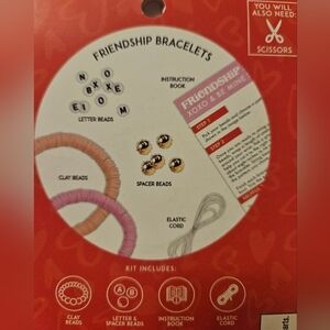Create unique friendship bracelets with this kit. Includes clay beads, letter beads, spacer beads and elastic cord.