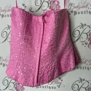 The bridal centre couture corset Pink sparkly Sequin Strapless Top