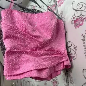 Glamorous pink strapless top with sparkling sequins. Perfect for a night out. Size 6. Get ready for an abundance of compliments! π Youβll be celebrated for your exceptional taste! π