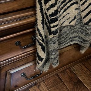 Stylish zebra print women's sweater featuring a chic black and tan design.ready to rotate to something else never wore!
