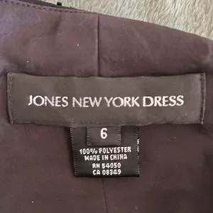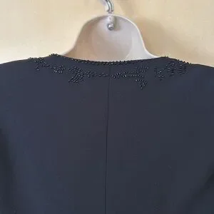 Jones New York black sheath tea length dress with beaded collar and hem size 6