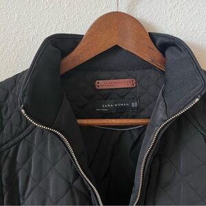 Zara Black Puffer Pocketed Zip Up Elegant Everyday Jacket Quilted Design