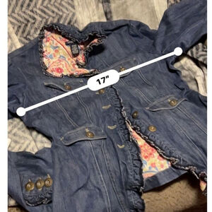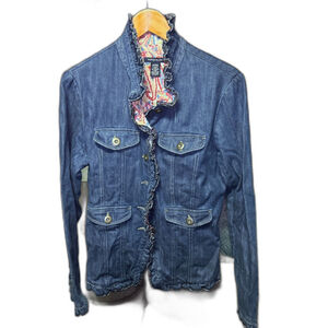 Boston Proper Denim Jacket Medium Ruffle Collar