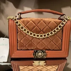 Brown and Gold Quilted Shoulder Bag with Chain Strap
