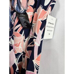 Perceptions 2 Piece Floral Shift Dress & Shrug Set Navy Blush Spring NEW 1X