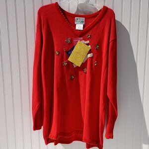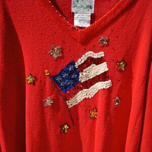 THE QUACKER FACTORY Sweater Womens 1X Red Patriotic Christmas American Flag NWT
