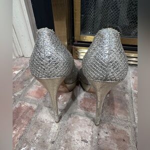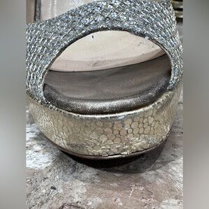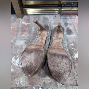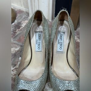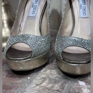 Jimmy Choo Glitter Platform Heels Size 38 EU /8 US Gold Silver Sparkle Stilettos