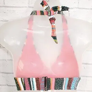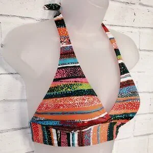 Anne Cole Sand Stripe Marilyn Printed Halter-Neck Bikini Top Size XL Orange NWT