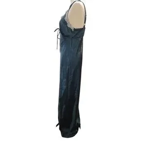 WILD FABLE turquoise satin white lace trim maxi slip dress y2k medium