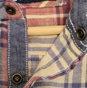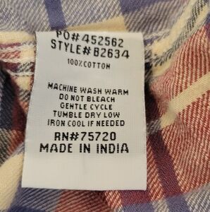 •Soft Plaid Flannel, long sleeves, pearl button snaps on pockets, wrists, and front closure, 2 front chest pockets