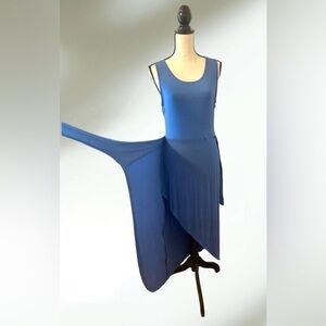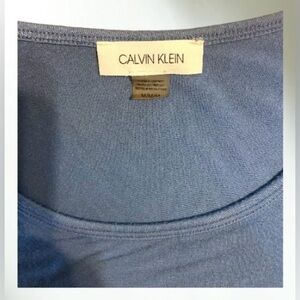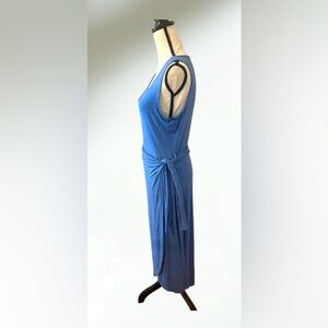 Calvin Klein Midi Sheath Wrap Dress Jersey Knit in Blue Size Medium