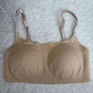 Experience comfort with this seamless tan bralette, perfect for everyday wear.