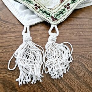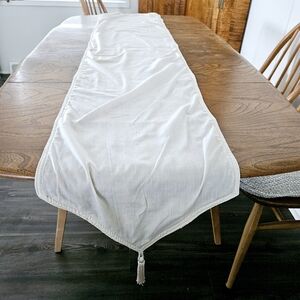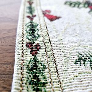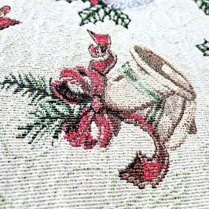 Christmas Holiday Lined Tablerunner with Tassle Ends Poinsettias Jingle Bells Or