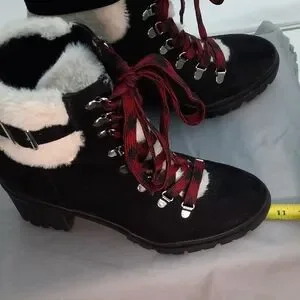 Step into sophistication with these black and red heeled boots, perfect for adding a touch of elegance to any outfit.