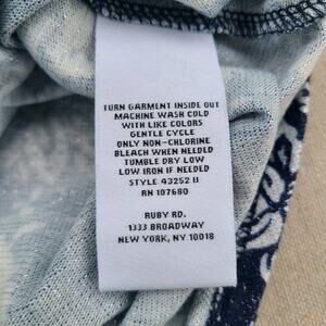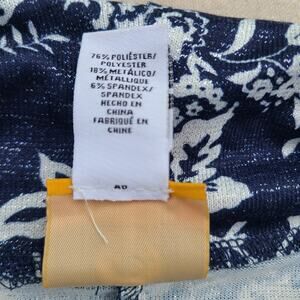 Ruby Rd Floral Cowl Neck 3/4 Sleeve Top Navy Blue Metallic Lightweight Size 2X