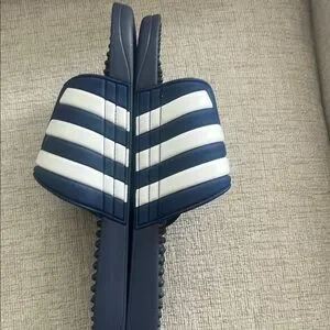 Adidas Navy and White Slide Sandals