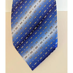 Gold City 100% Silk Mens Neck Tie Blue Silver Red Geometric Pattern Shimmery