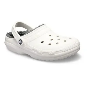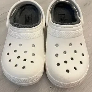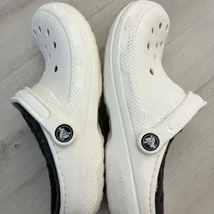 CROCS Classic White and Gray Fuzzy Lined Mules & Clogs