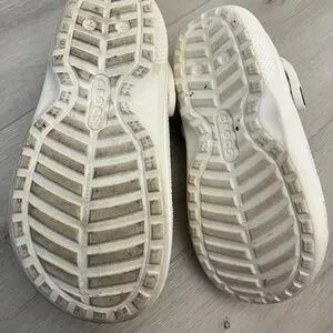 Experience the comfort and style of CROCS with these white and gray mules & clogs. Featuring a signature perforated design for breathability and a versatile heel strap, these shoes are perfect for casual wear. Made from durable Croslite material, they offer a lightweight and cushioned feel for all-day comfort.