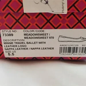 NWT$228 Tory Burch Minnie Travel Meadowsweet TT Logo Leather Ballet Flats 5.5