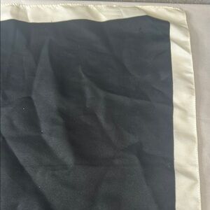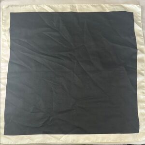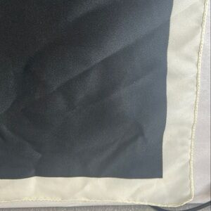 Chic black head or neck scarf with a soft cream border. Ideal for stylish layering. made in Italy 100% polyester measurements are approximately 17”X 17” pre owned in good condition please see pictures