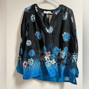 Ann Taylor LOFT Women's Black Blue Multi Color Floral Blouse