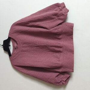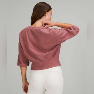 This softly textured top is not your average pullover, with a wide hem band, lots of volume, and cropped sleeves that stay out of the way